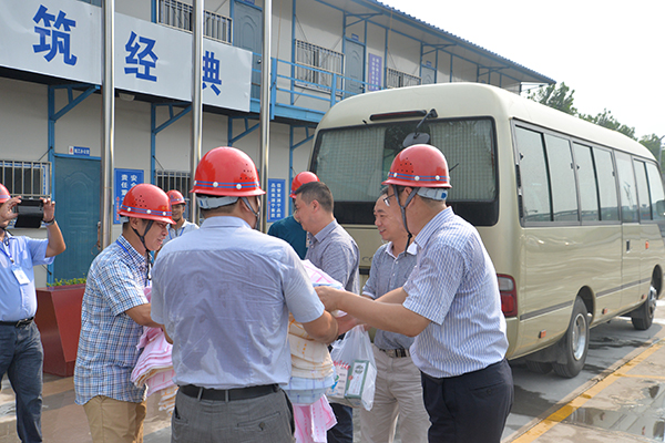 會前,與會人員還參觀了由揚(yáng)建承建的七二三所科研樓和參建的新萬福大橋工程,各位領(lǐng)導(dǎo)和專家深入施工一線調(diào)研指導(dǎo),為項目一線施工人員送去防暑慰問品,詢問了解安全生產(chǎn)保障措施并叮囑確保夏季汛期和高溫季節(jié)的施工安全。