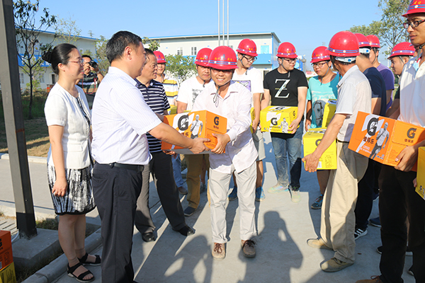 各位領(lǐng)導(dǎo)還慰問(wèn)了高溫中戰(zhàn)斗在一線的工人,關(guān)囑他們注意安全,注意身體。