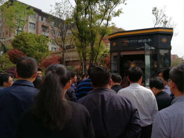 黃金地段書香清遠(yuǎn)。近日,在揚(yáng)參加中宣部社會主義核心價值觀宣傳教育工作培訓(xùn)班的全國各地學(xué)員150多人,在市委常委、宣傳部長姜龍陪同下,參觀了華建上院城市書房。