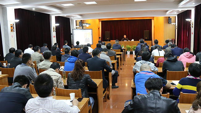 會上,蔣伏虎教授詳細介紹了市第七次黨代會報告的主要內(nèi)容,重點圍繞奮力譜寫好中國夢第一個百年夢想的揚州篇章,對今后五年我市經(jīng)濟社會發(fā)展藍圖,對“邁上新臺階、建設新?lián)P州”的主題,“經(jīng)濟強、百姓富、環(huán)境美、社會文明程度高”的新?lián)P州等作了詳細解讀。他強調(diào),要抓住黨代會的主題和精神實質,宣傳好落實好黨代會精神,做好三個方面工作:一是學習黨代會文件,重在領會精神實質;二是實現(xiàn)發(fā)展藍圖,重在主動承擔責任;三是加強黨的建設,重在堅強有力領導。