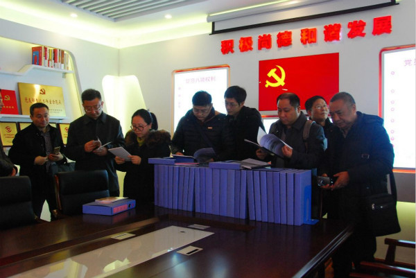 錢啟明一行參觀了長江水務公司服務大廳、第五黨支部黨員之家和吳書記工作室。通過觀摩工作室的“1+3”黨建模式,實地了解“支部概況”“兩學一做”“黨員園地”“學習園地”等板塊展示,深入學習了第五黨支部的特色黨建工作成果。