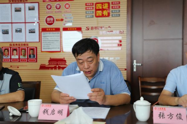 會上,錢啟明匯報(bào)了上半年公司三大攻堅(jiān)戰(zhàn)、形式主義官僚主義專項(xiàng)整治、黨建和黨風(fēng)廉政建設(shè)、企業(yè)領(lǐng)導(dǎo)人兼職整改、企業(yè)層級壓縮和企業(yè)混改推進(jìn)等重要工作任務(wù)完成情況。揚(yáng)州分公司就落實(shí)“兩個責(zé)任”,加強(qiáng)項(xiàng)目黨建和黨風(fēng)廉政建設(shè)工作情況進(jìn)行了匯報(bào)。